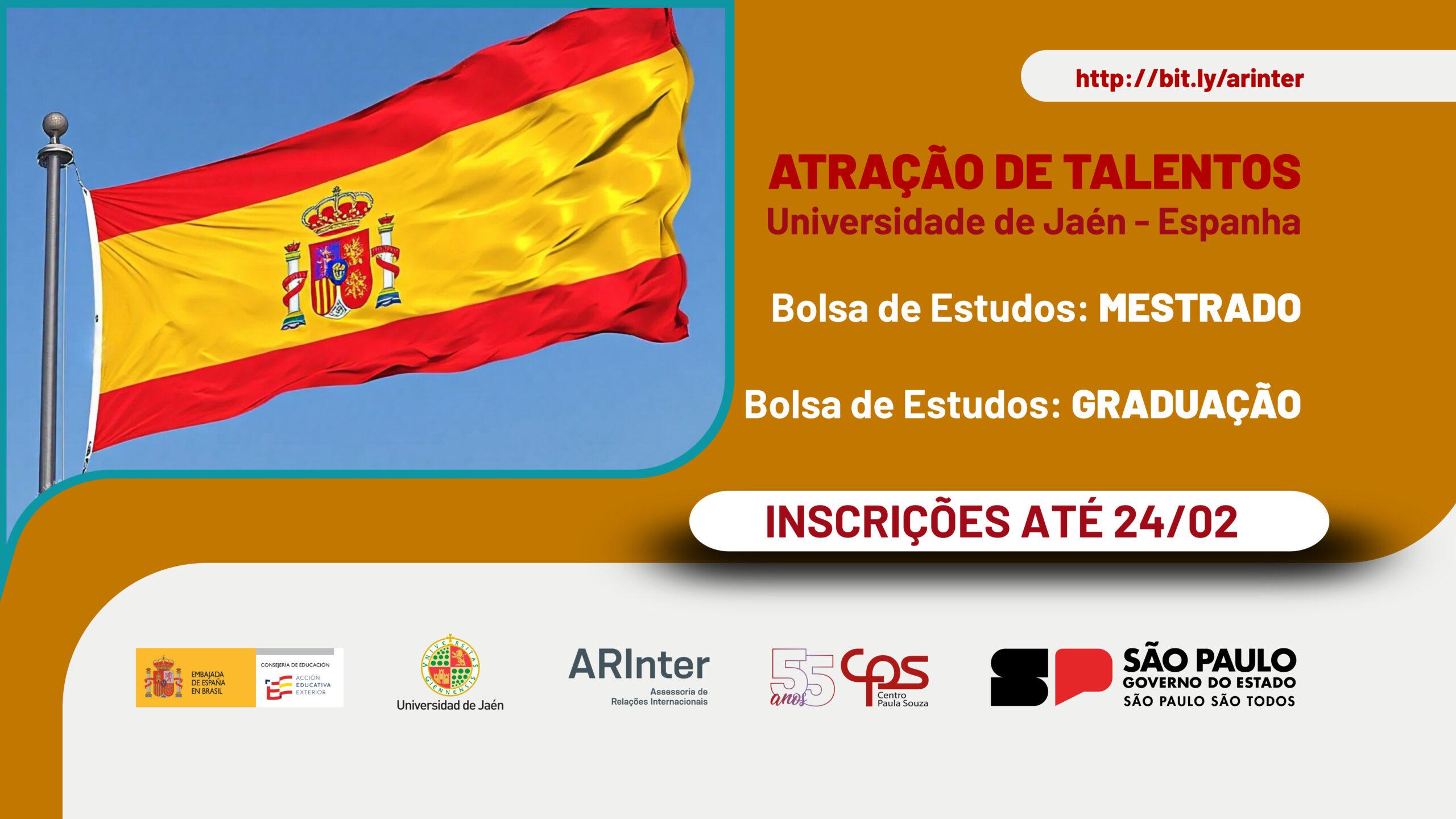 Estudantes de Fatecs que completem seu curso até junho de 2025, têm até o dia 20 de fevereiro para se inscrever na pré-seleção do Programa Atração de Talentos da @universidadjaen, na Espanha, Edital ARI Nº 001/2025