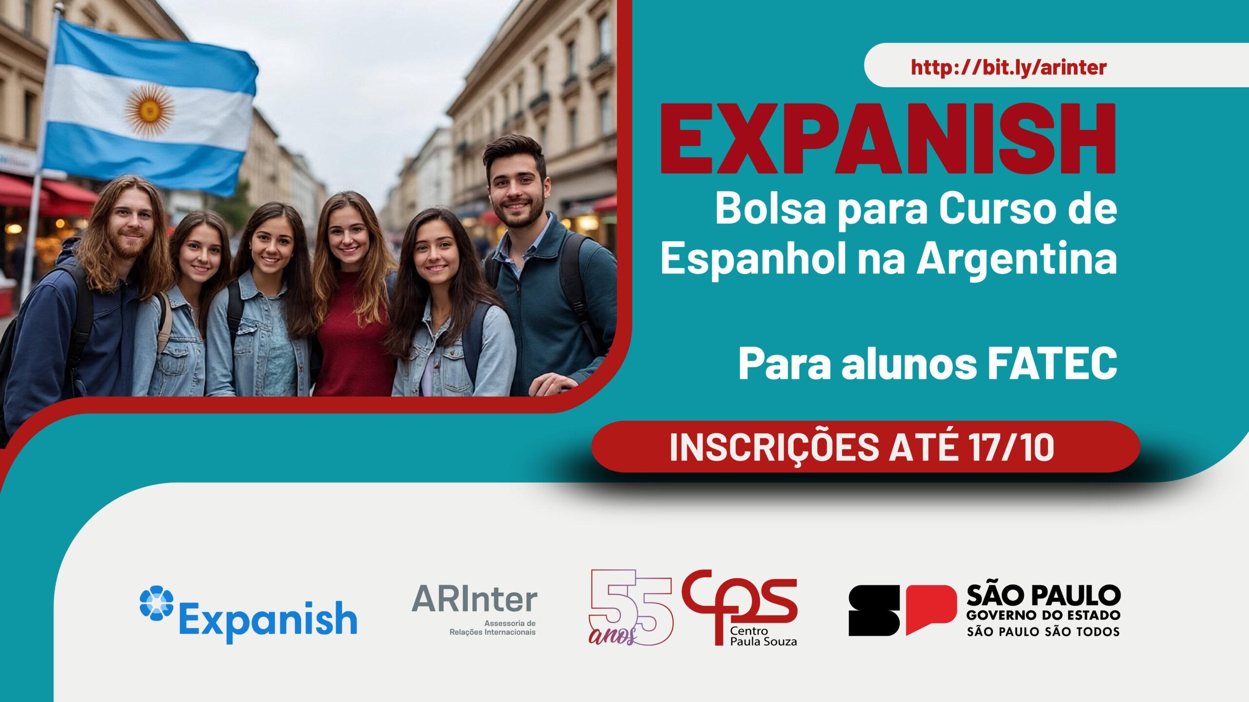 A Assessoria de Relações Internacionais do Centro Paula Souza (ARInter) divulga a abertura do Edital ARI nº 069/2025, que oferece bolsa de estudos para estudantes das Fatecs presenciais participarem do Programa Expanish – um curso intensivo de língua espanhola em Buenos Aires, Argentina.