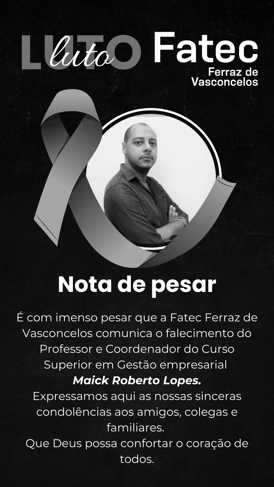 É com imenso pesar que a Fatec Ferraz informa este momento de luto.