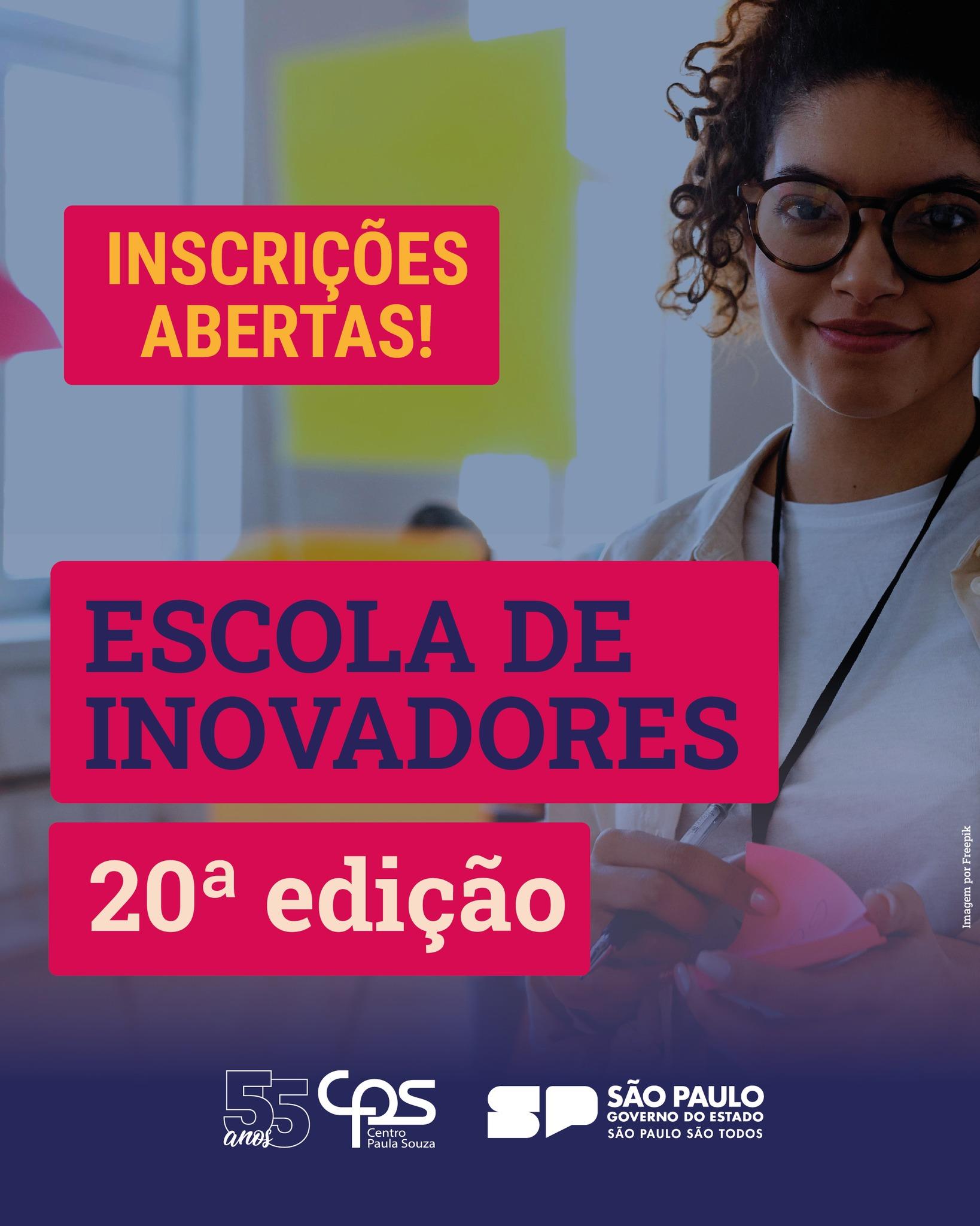 O Centro Paula Souza (CPS) está com inscrições abertas para a 20ª edição da Escola de Inovadores, curso de extensão gratuito, organizado pela Inova CPS, com objetivo de ensinar pessoas com espírito empreendedor a transformar ideias inovadoras em modelos de negócios. As inscrições são gratuitas e devem ser feitas até 16 de março pelo site www.cps.sp.gov.br/escoladeinovadores.
