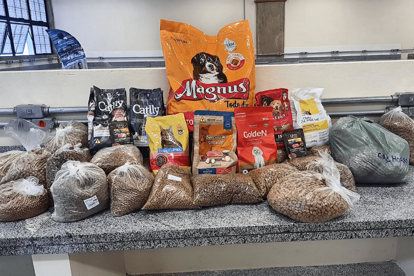 Conseguimos arrecadar cerca de 62kg de ração, sendo: